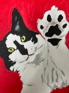 Using the softball bat that I keep under my bed (for defense against home invaders*), I was able to sweep the book toward me. I then stood and held up the victim of this most recent misdemeanor. Bowie looked straight ahead, avoiding my gaze, while Mona looked up at me with angelic eyes. Both waited to see what stern words Mommy was going to say.